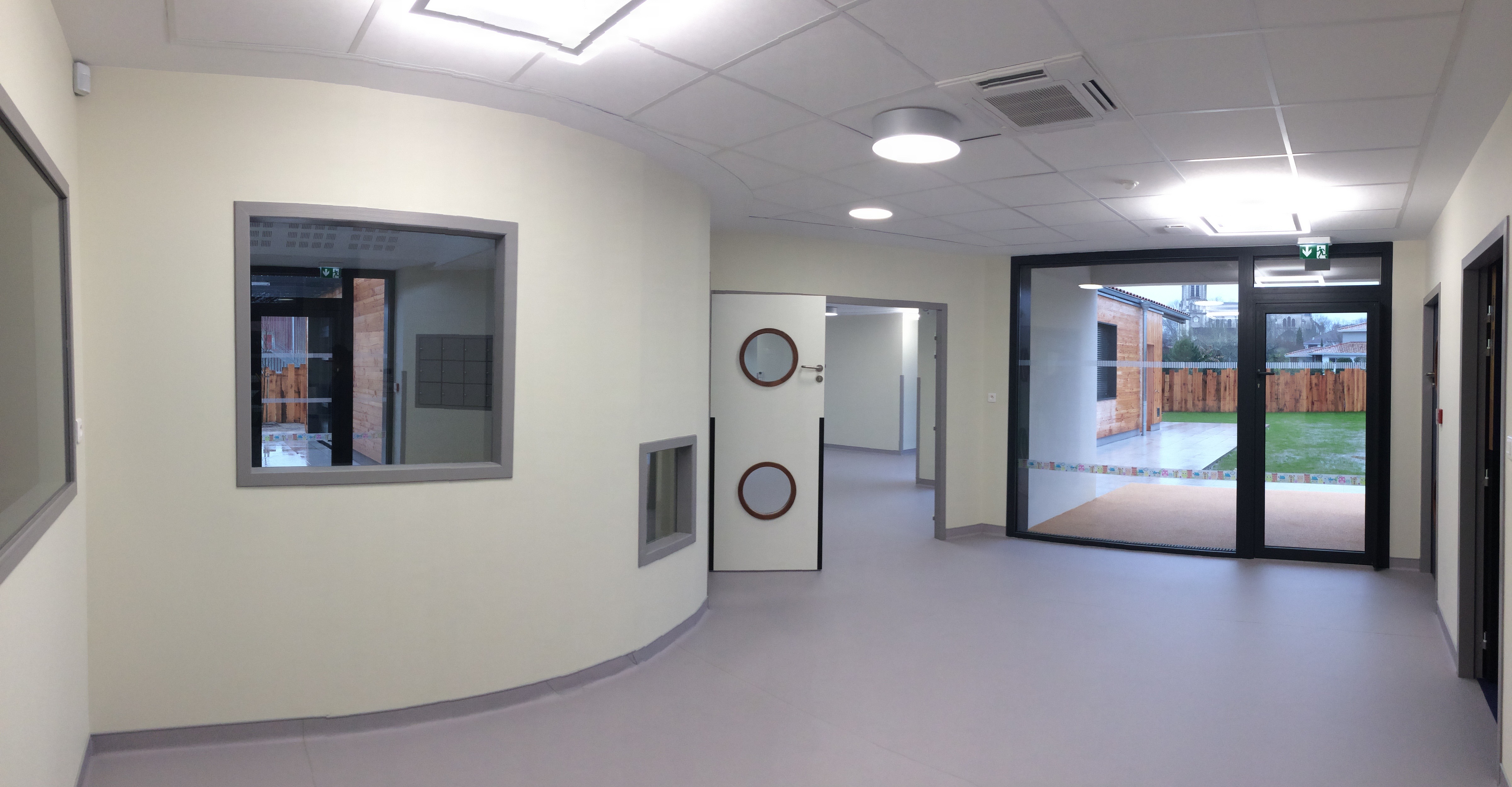 L'opération : Création d'un équipement d'accueil pour la petite enfance à PONTONX : Crèche de 25 places intégrant un Relais d'Assistantes Maternelles. L'opération a été divisée en 13 lots. Durée des travaux : 12 mois. La construction de plein pied est composée de 4 corps de bâtiments distincts ; deux blocs ont été réalisés en mur à ossature bois, et les 2 autres en briques. Un noyau cylindrique central en béton abritant le jeu d’eau, assure la liaison de ces 4 blocs. Le parvis d’entrée en forme de vague est couvert par une charpente métallique avec une toiture en zinc. Une clôture à lames verticales de bois massives en chêne délimite le terrain et la structure de jeux extérieure. Le bâtiment, chauffé par un chauffage a sol, comporte des dortoirs et salles d’éveils pour les petits et grands, une salle de repas, un atrium vitré en partie centrale amenant la lumière du jour, un coin jeu d’eau, un atelier de peinture, un espace RAM, ainsi qu’une zone technique comportant une cuisine collective, des vestiaires, sanitaires, salle de repos personnel, lingerie buanderie etc.. Notre mission pour la phase étude a été d’assurer l’économie du projet à ses différentes phases, depuis la phase esquisse jusqu’au PRO. Nous avons assuré le cahier des charges et les quantitatifs pour l’appel d’offres de tous les lots, excepté les lots fluides. Puis l’analyse des offres et la présentation du rapport à la Communauté des Communes en collaboration avec l’Architecte. Pour la phase chantier, notre mission a été de planifier les travaux et de coordonner les entreprises, afin de livrer ce chantier aux impératifs de la Maîtrise d'Ouvrage.
